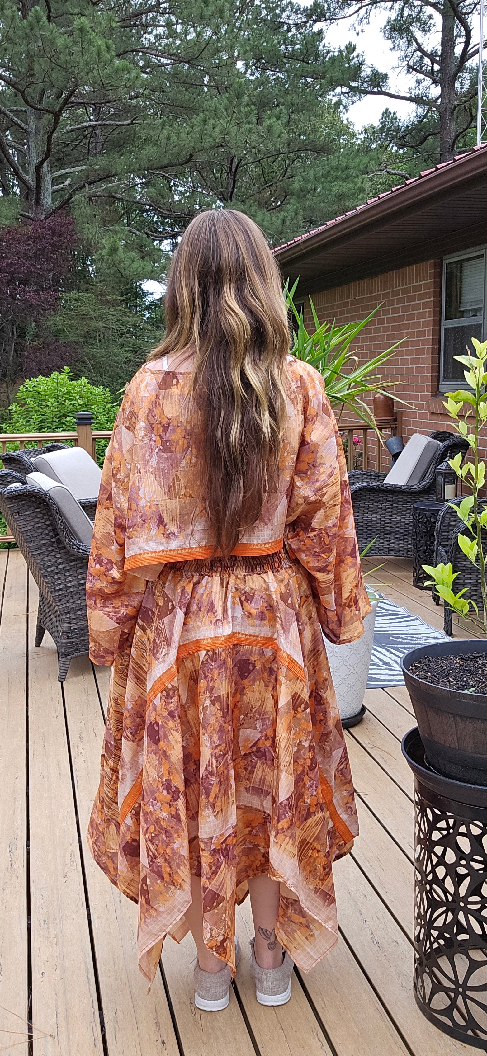 "8 Whispers " is a stunning set that consists of a beautiful handkerchief skirt that you can wear it as a dress and a crop top.