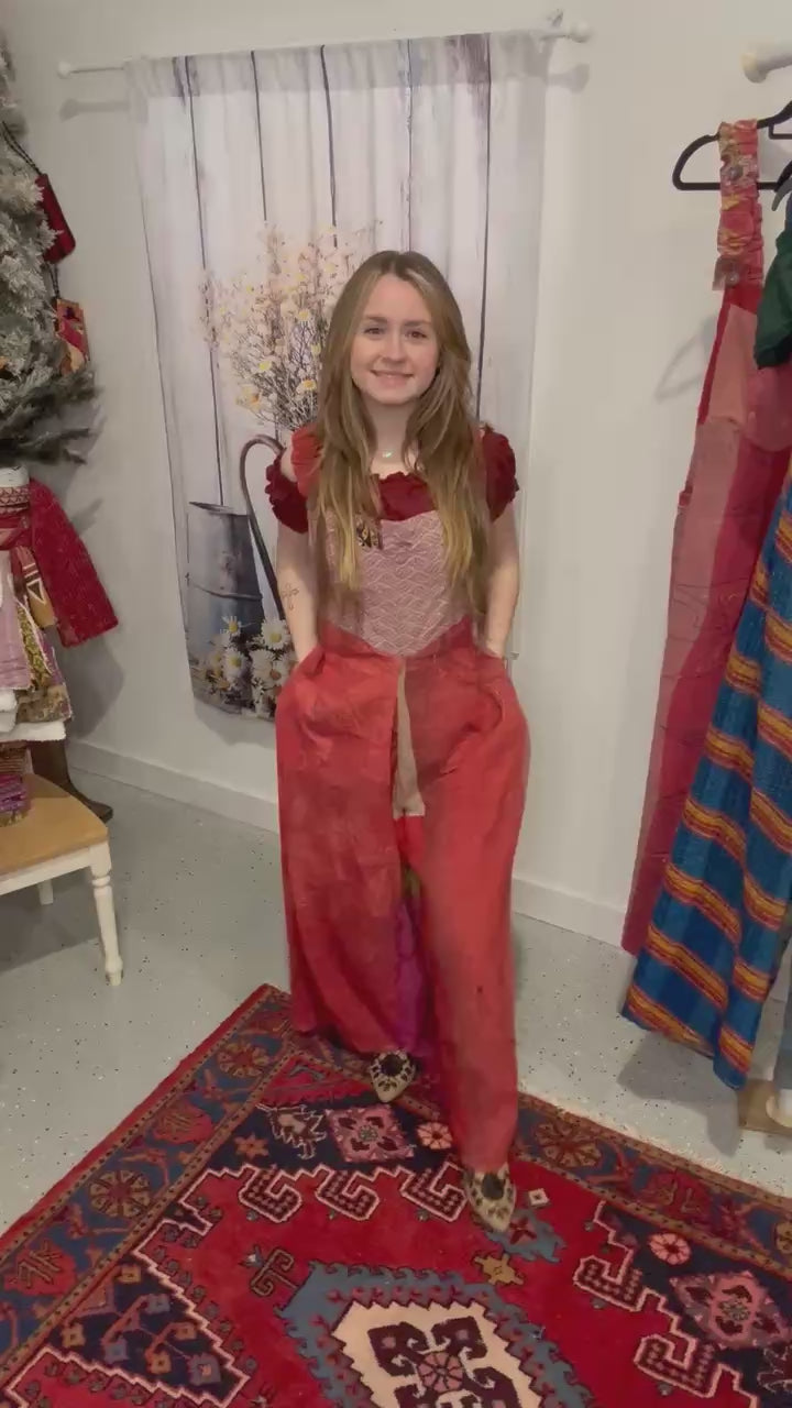 " Apron Jumpsuit " in heavy kantha - - One size S to 2X /3X