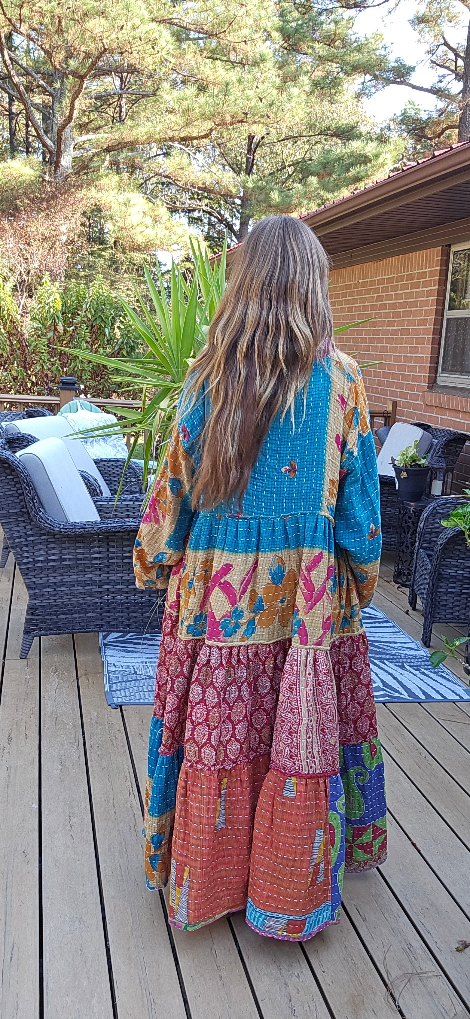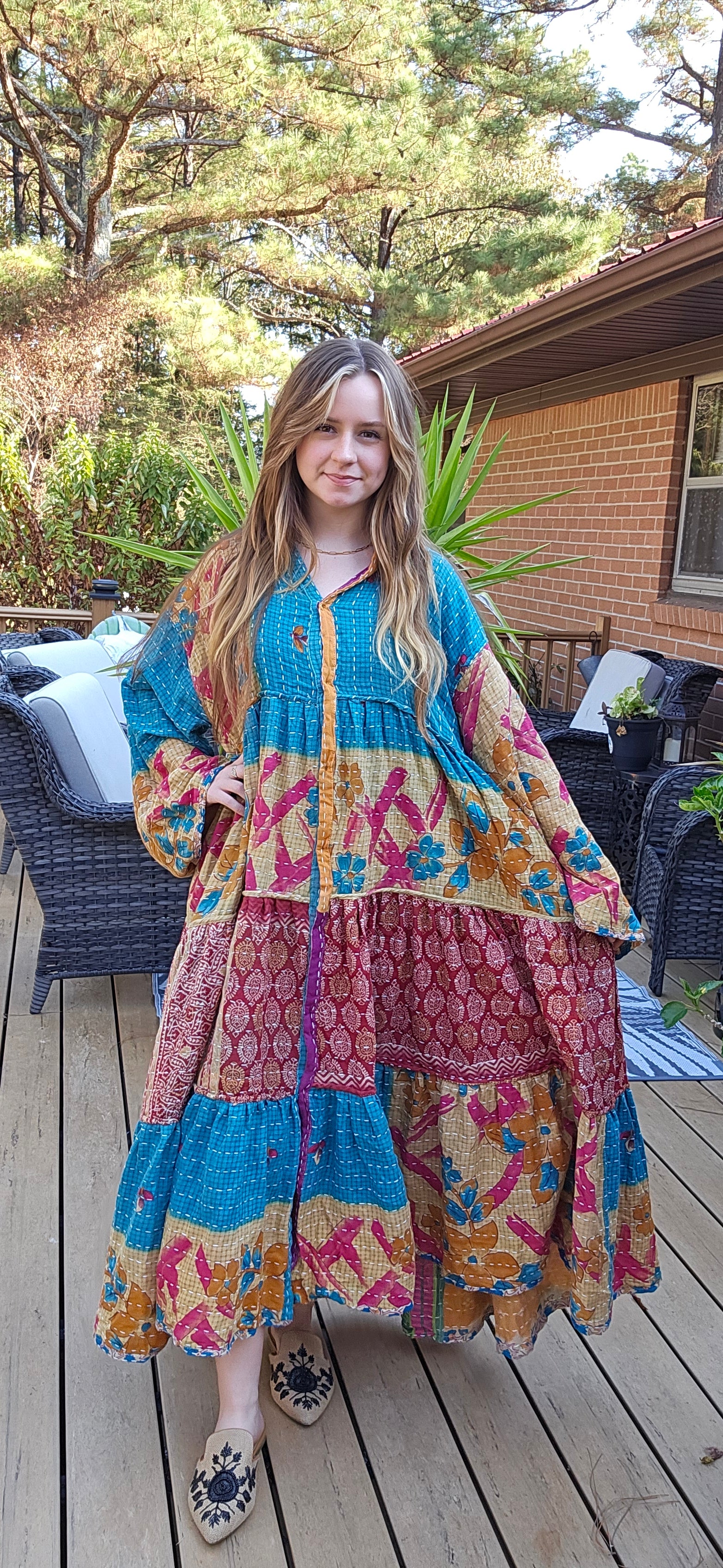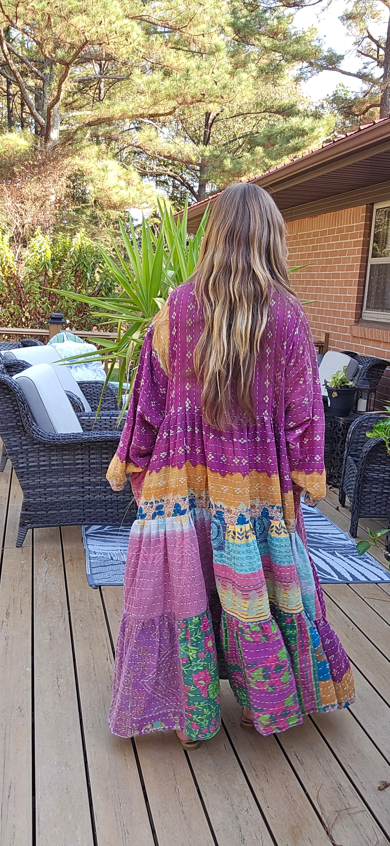 "Cascade" is a beautiful flowy dress that you can wear it as a duster as well Is reversable and is ready to turn heads