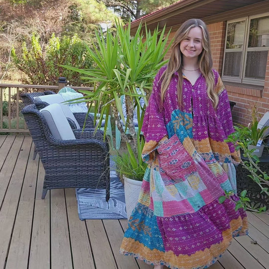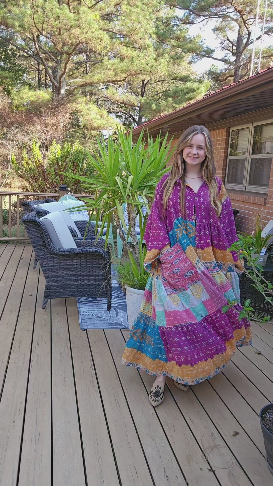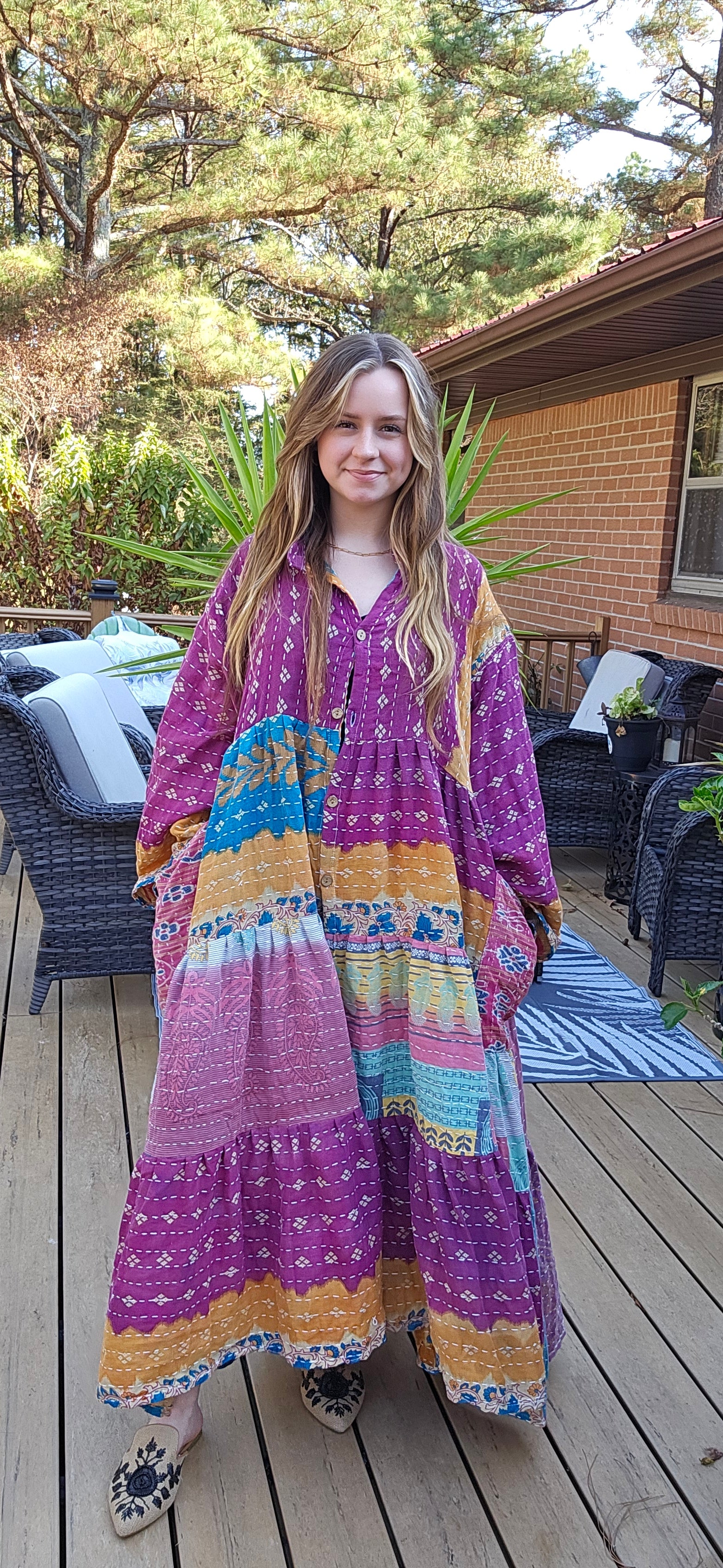 "Cascade" is a beautiful flowy dress that you can wear it as a duster as well Is reversable and is ready to turn heads