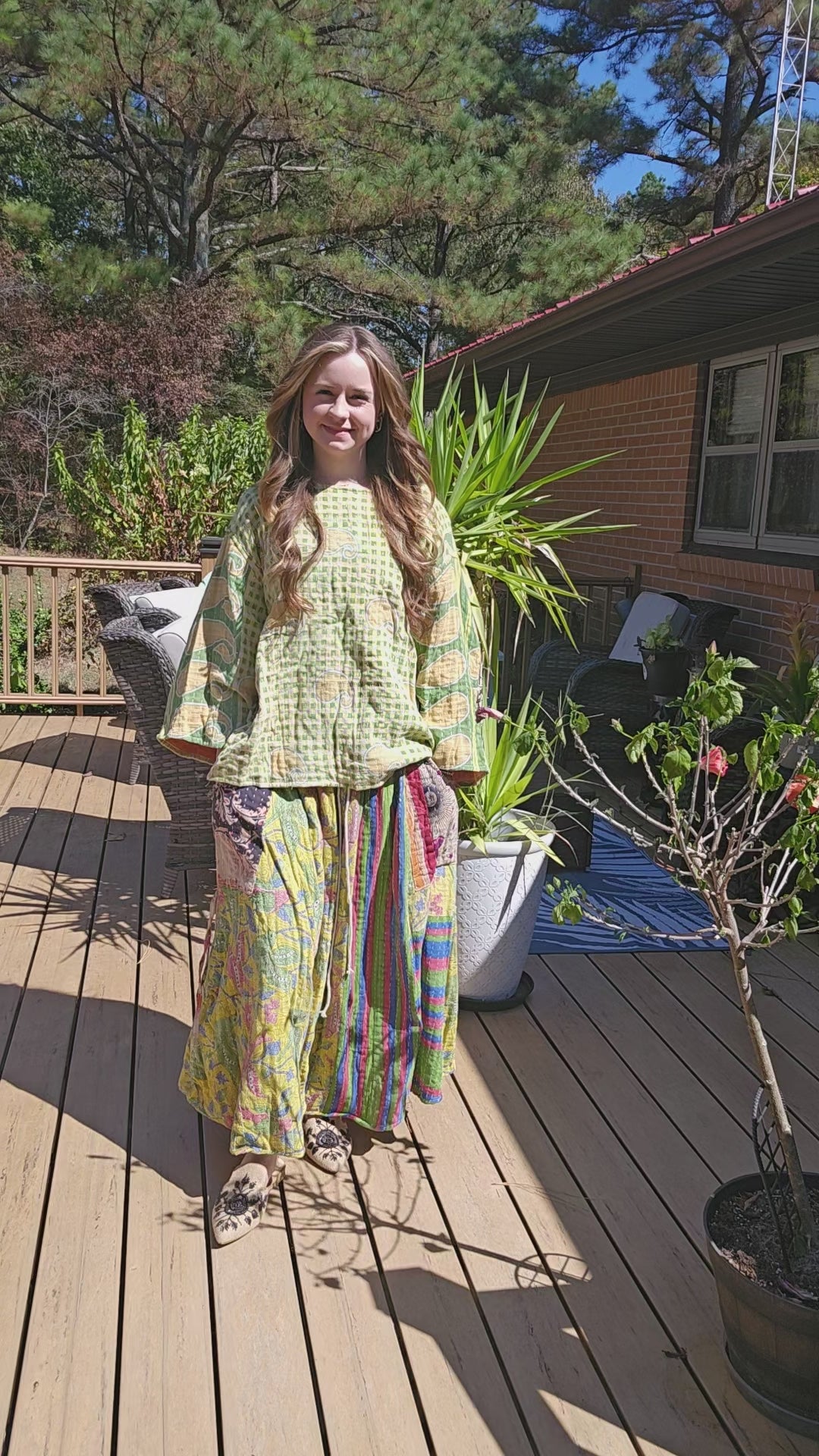Peasant Light Kantha Pant Set - consists of a beautiful pair of pants and a crop top. One Size fits S to 2X - pls refer to the measurements
