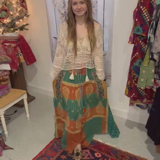 "Peasant" Light Kantha Maxi Skirt - One Size S to 2X/3X