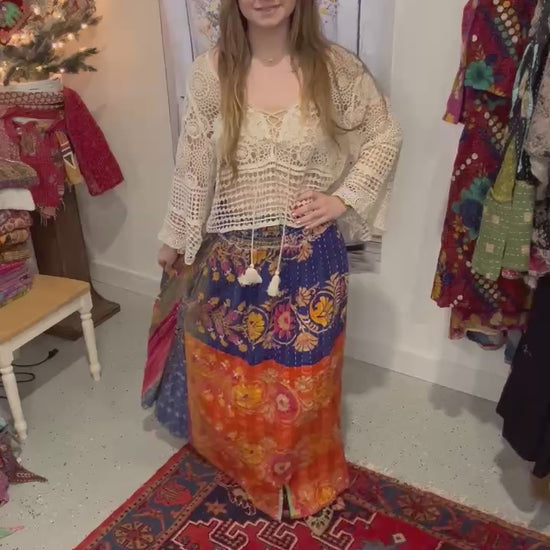 "Peasant" Light Kantha Maxi Skirt - One Size S to 2X/3X