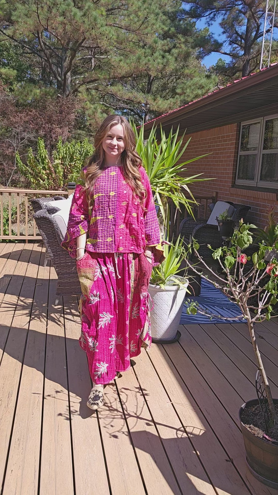 Peasant Light Kantha Pant Set - consists of a beautiful pair of pants and a crop top. One Size fits S to 2X - pls refer to the measurements