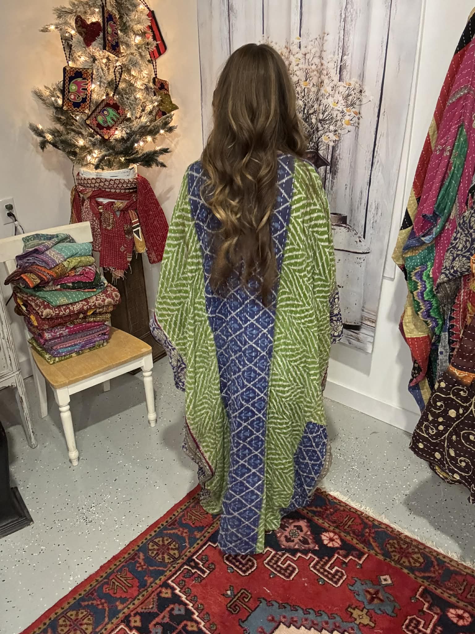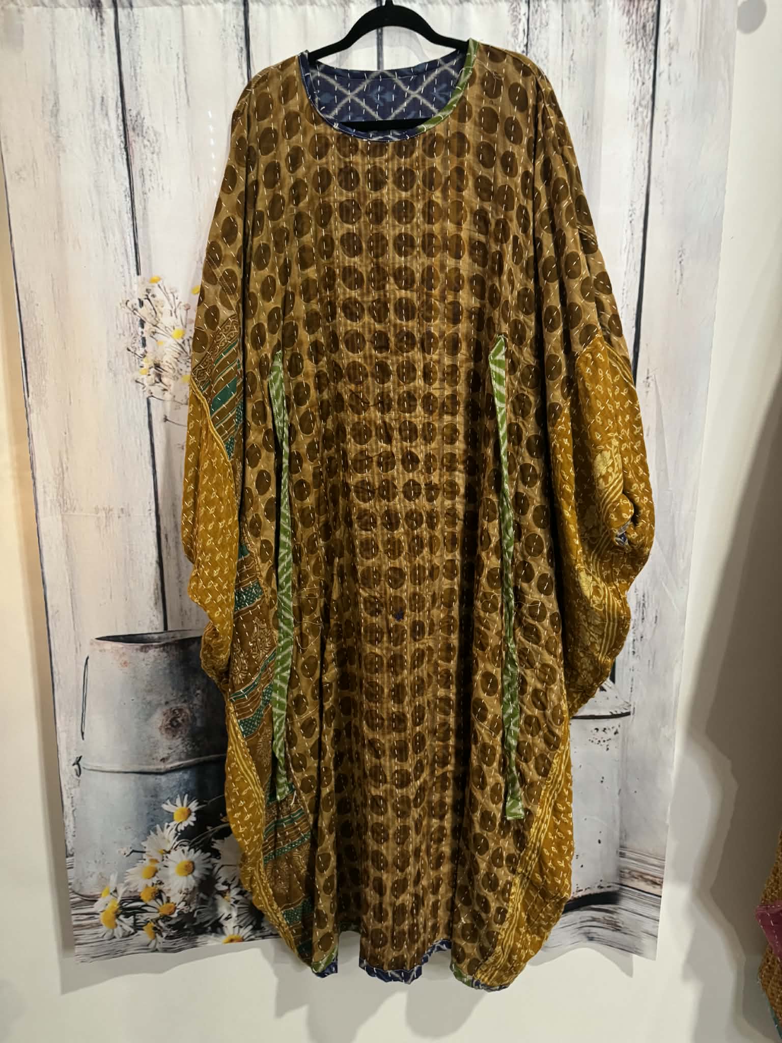 Long Caftan in light kantha - One size S to 3X /4X