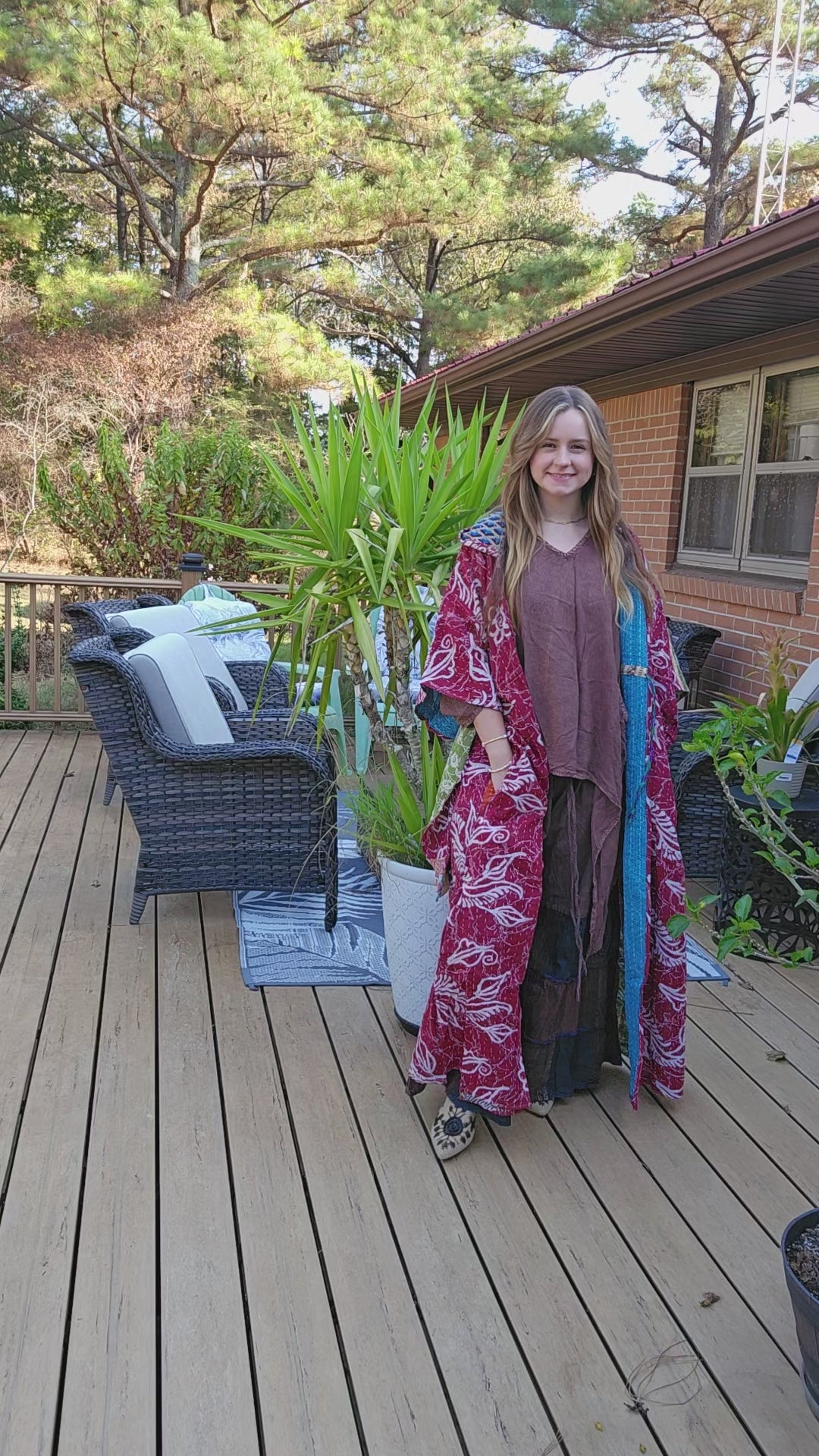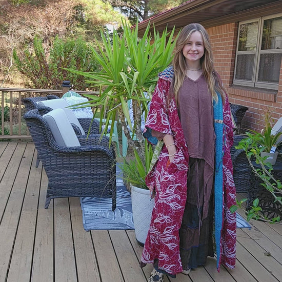 Whimsical Fairy / Witchy Duster with Elongated Hoodie in Light Kantha - One Size S to 2X