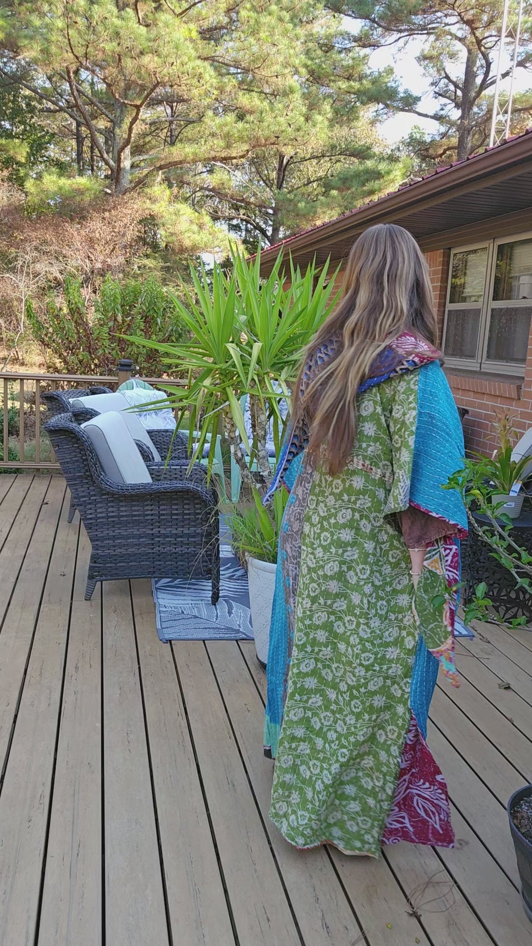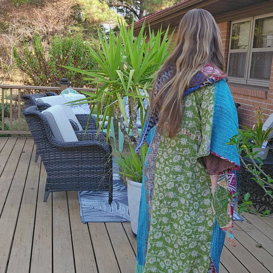 Whimsical Fairy / Witchy Duster with Elongated Hoodie in Light Kantha - One Size S to 2X