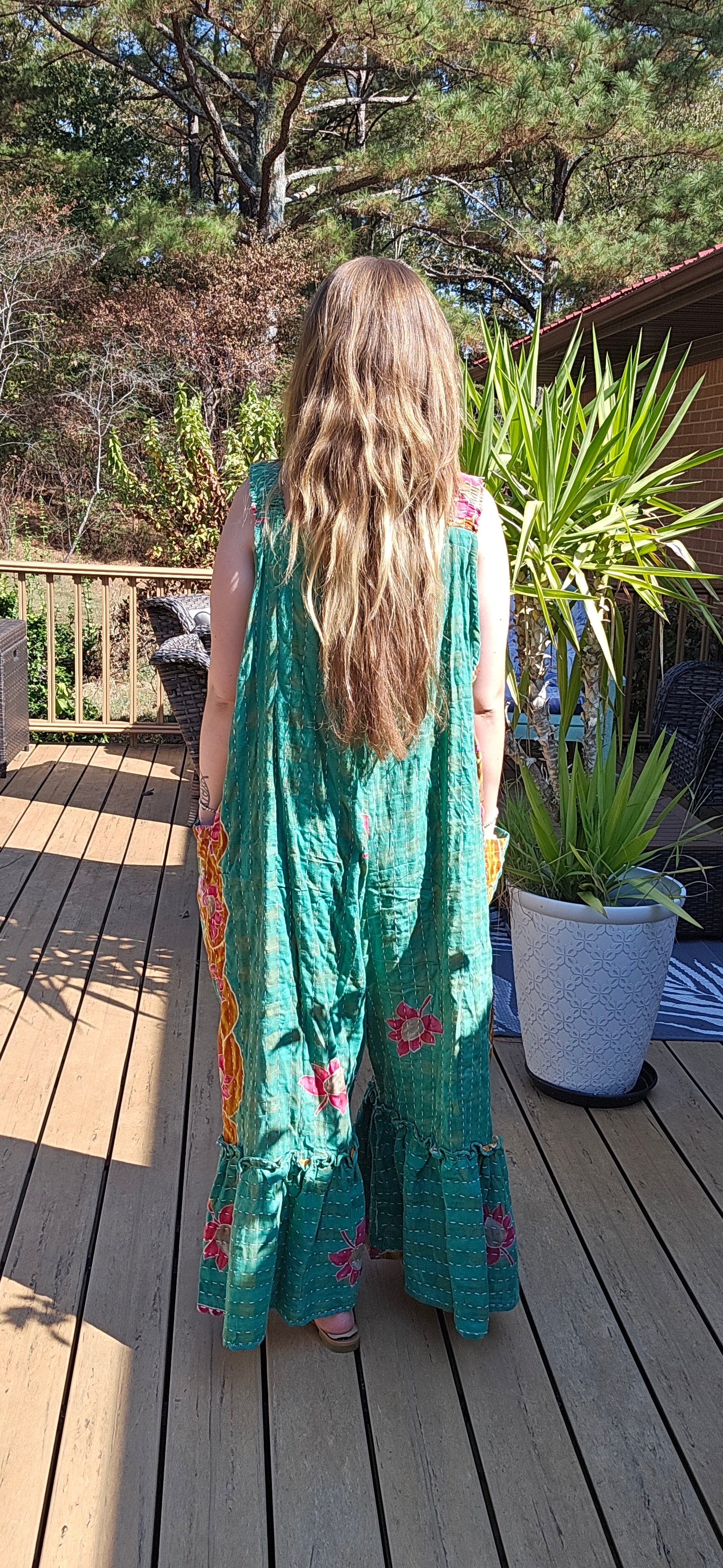 " Good Vibes" is a beautiful jumpsuit in light kantha that will become your favorite to go item .