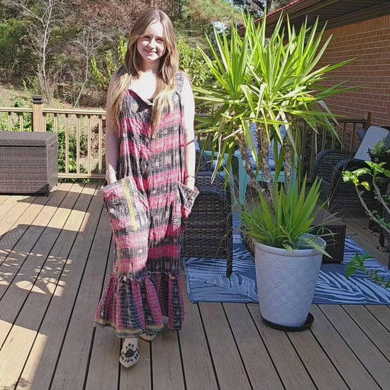 "Good Vibes" Jumpsuit in light kantha - One size S to 2X/3X
