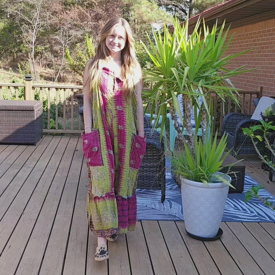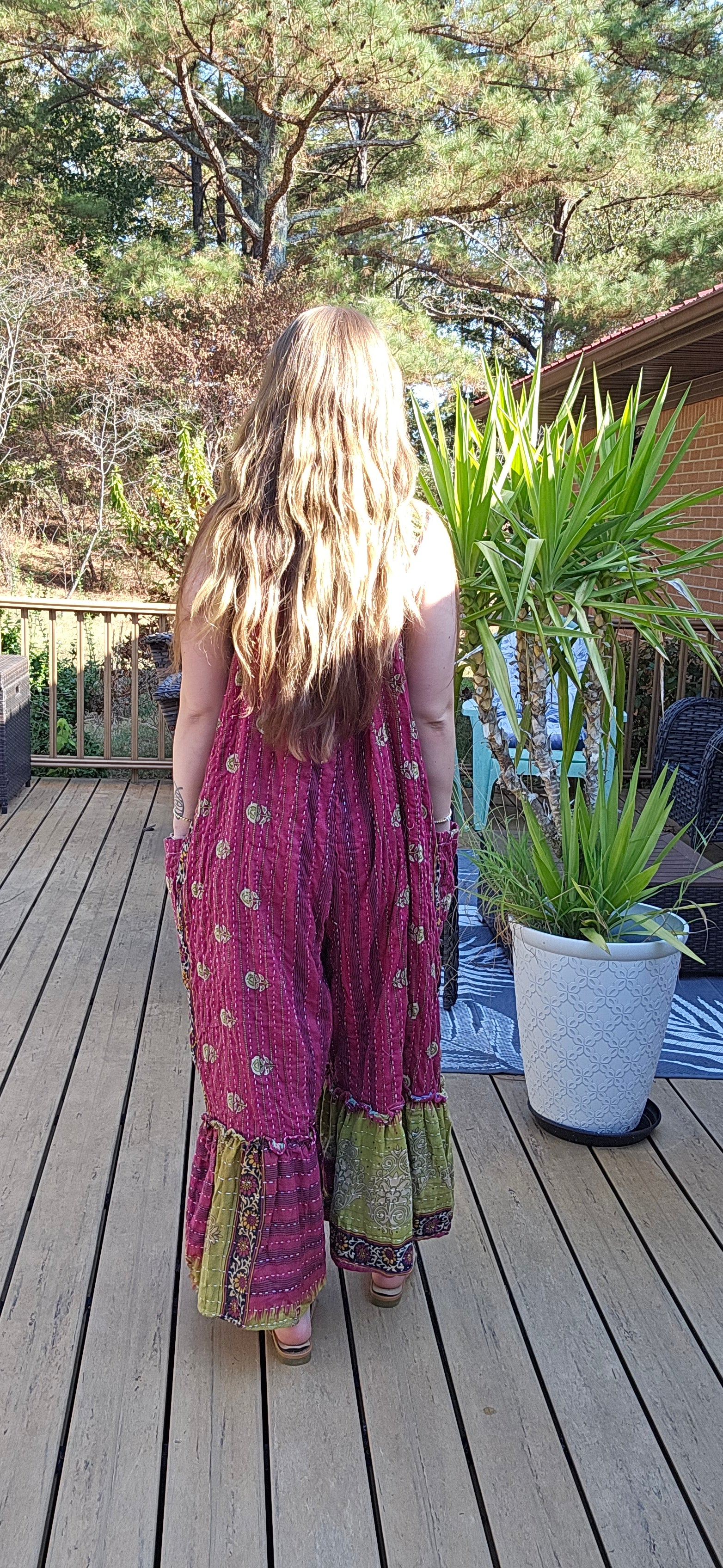 " Good Vibes" is a beautiful jumpsuit in light kantha that will become your favorite to go item .