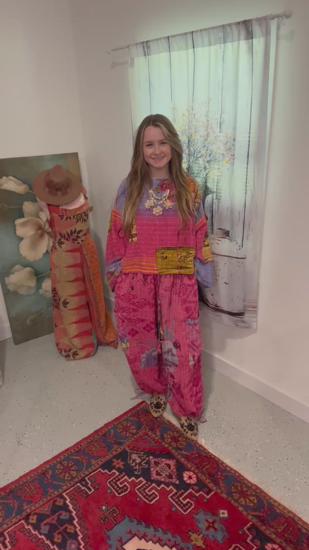Beautiful set in 2 layers kantha - One Size fits most S to 3X- please refer to measurements