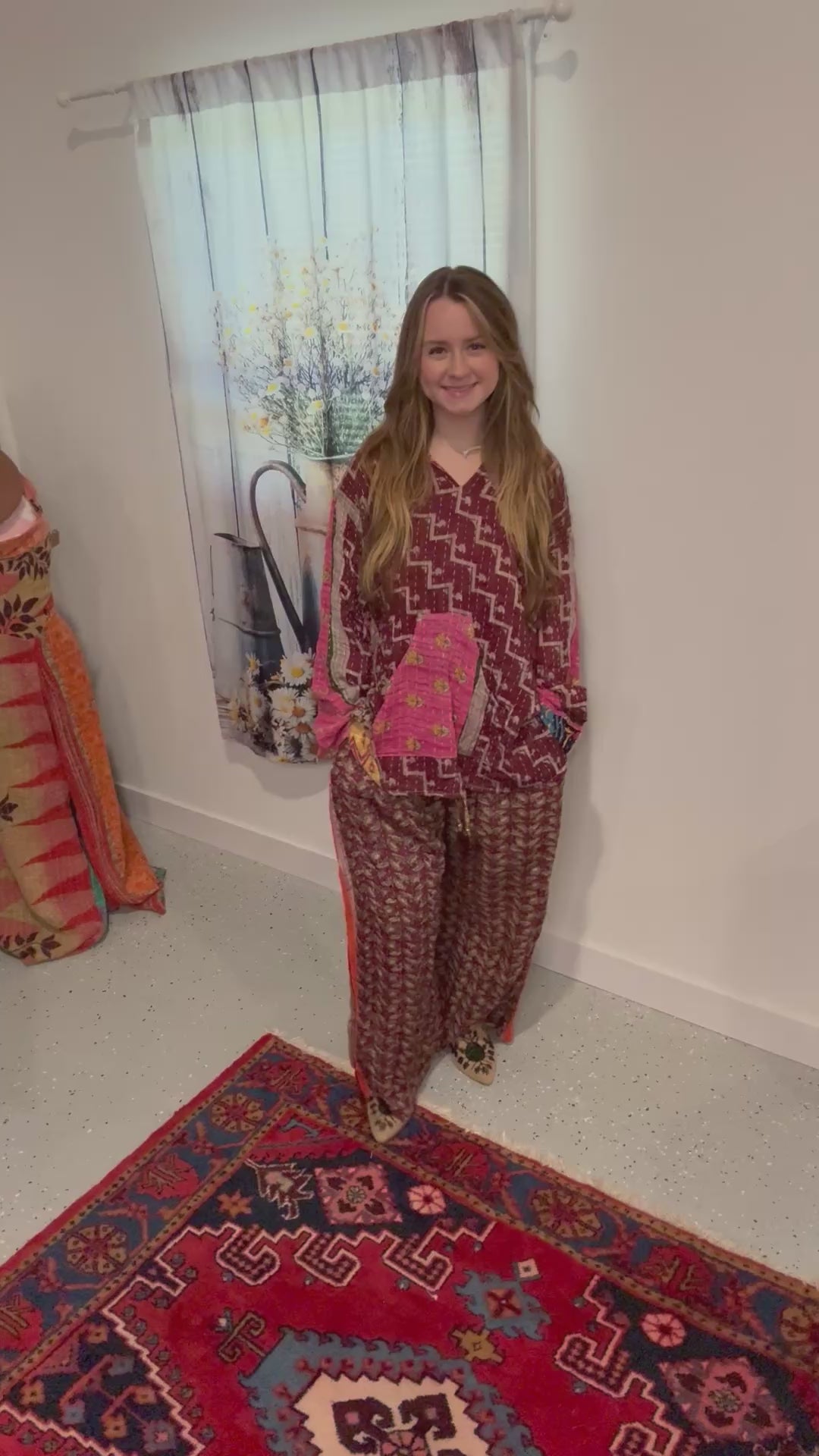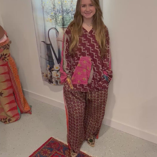 Beautiful Kantha Set - consists of hoodie abd palazzo pants - One Size fits S to 2X - pls refer to the measurements