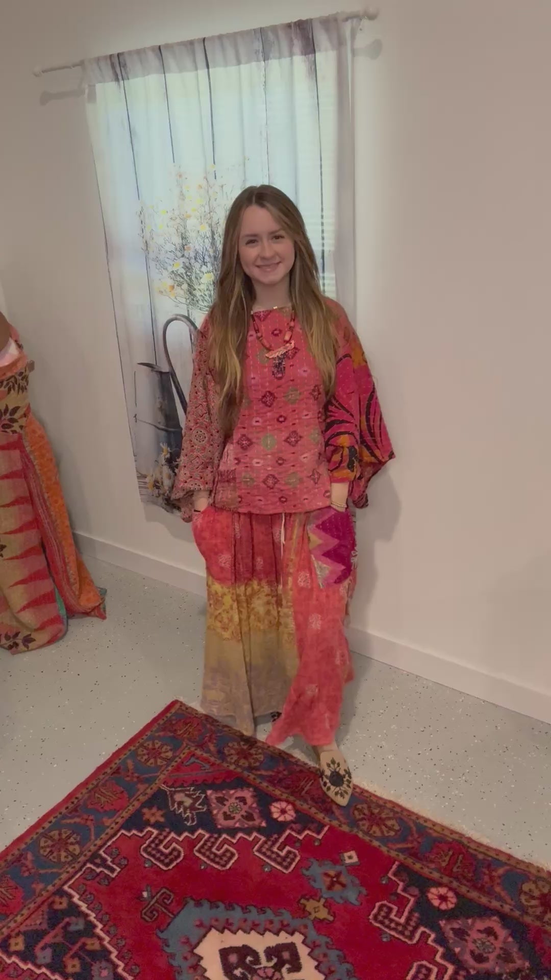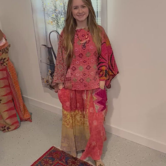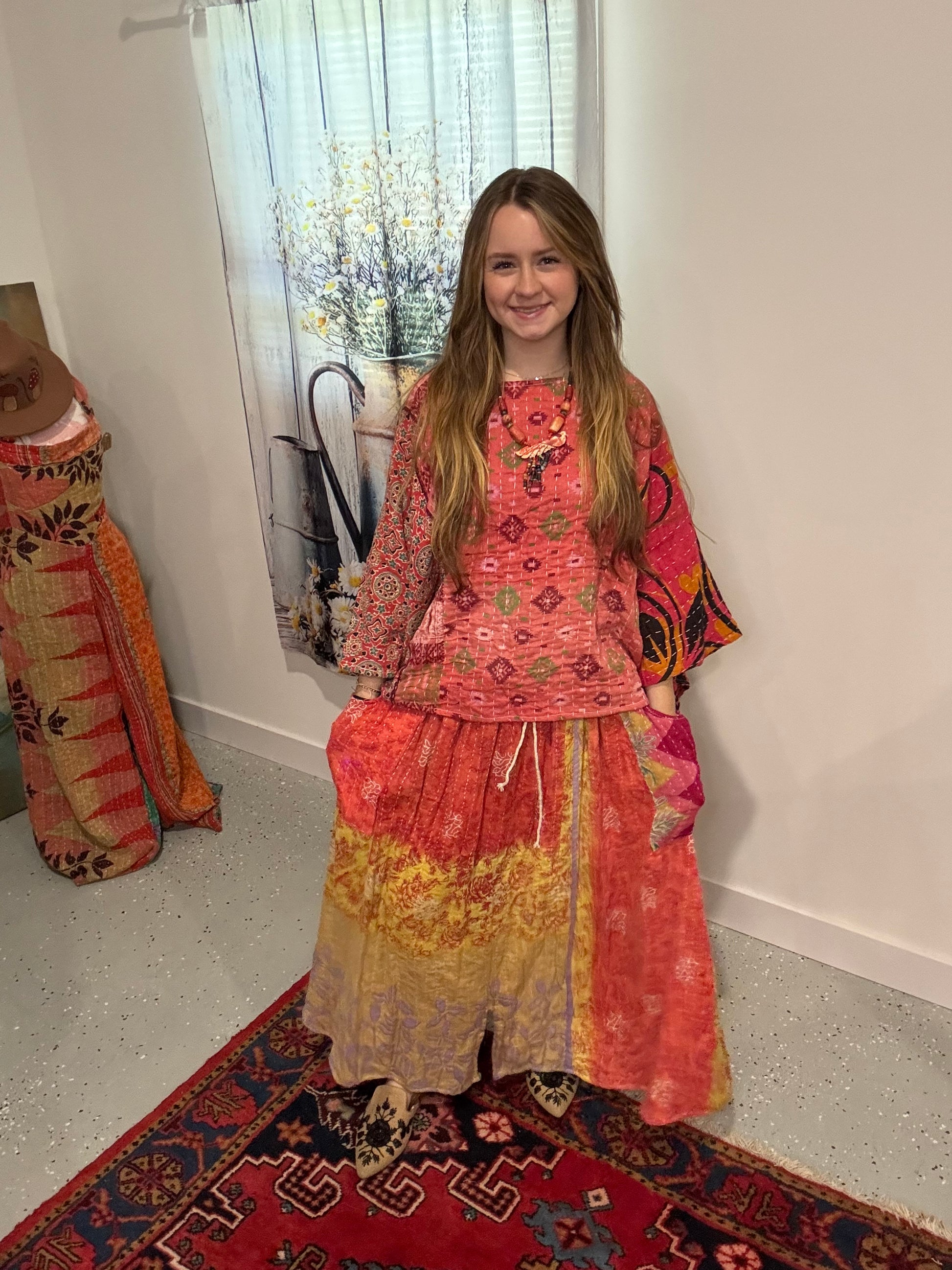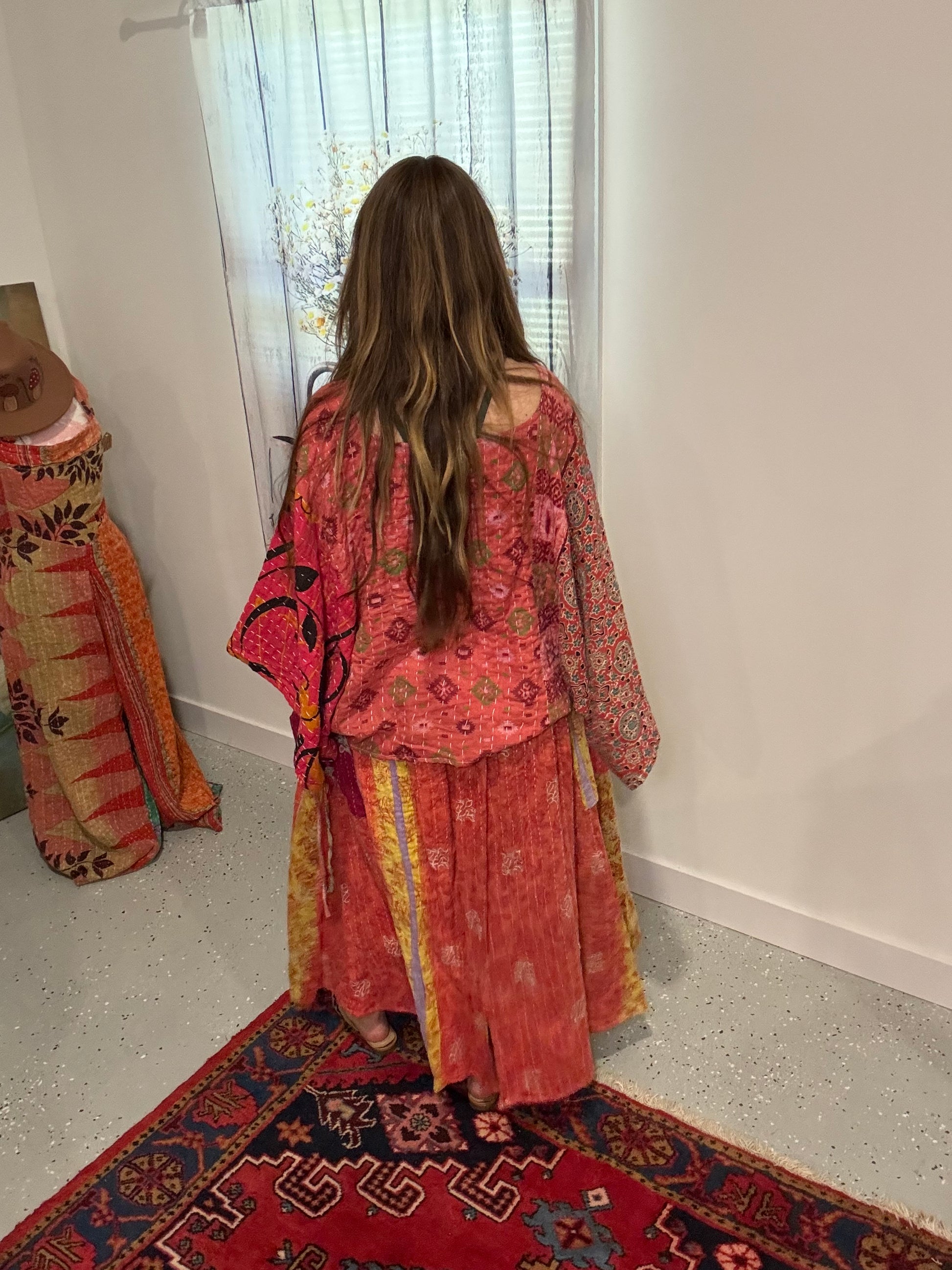 Peasant Kantha Set - consists of a beautiful skirt and tunic style top with butterfly style sleeves - One Size fits S to 2X - pls refer to the measurements